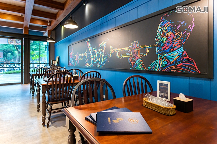 呼應店名,以藍色、爵士調風格為靈感元素來設計餐廳的每一處、每一角 ~ 讓老饕您在此用餐,不僅是享受眼前的美味,更是享受在這裡悠閒自在、放鬆的心境與氛圍。