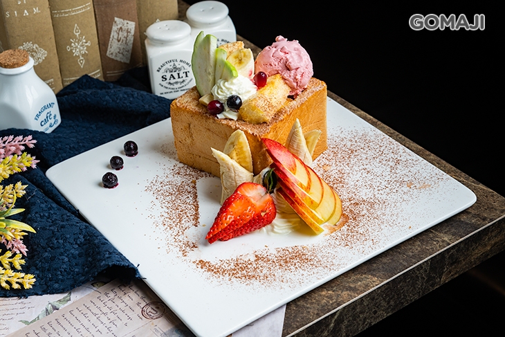 還有人氣不遑多讓、口味多樣化的蜜糖吐司可以選!現烤酥脆吐司佐以香濃卡士達醬、新鮮水果與香甜冰淇淋,富饒層次的滋味,無論男女老少都為之著迷!邊切邊吃,分享美味,更分享幸福。