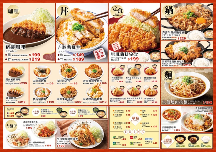 ◆ 日本進口豬排沾醬與丼醬汁:加入大量蔬果特調而成的豬排沾醬,搭配以高湯、醬油、砂糖、鰹魚、昆布與洋蔥等多達15種以上食材熬製而的丼醬汁,混合蛋液澆淋於豬排與米飯上,展現濃郁順口的幸福究極美味。