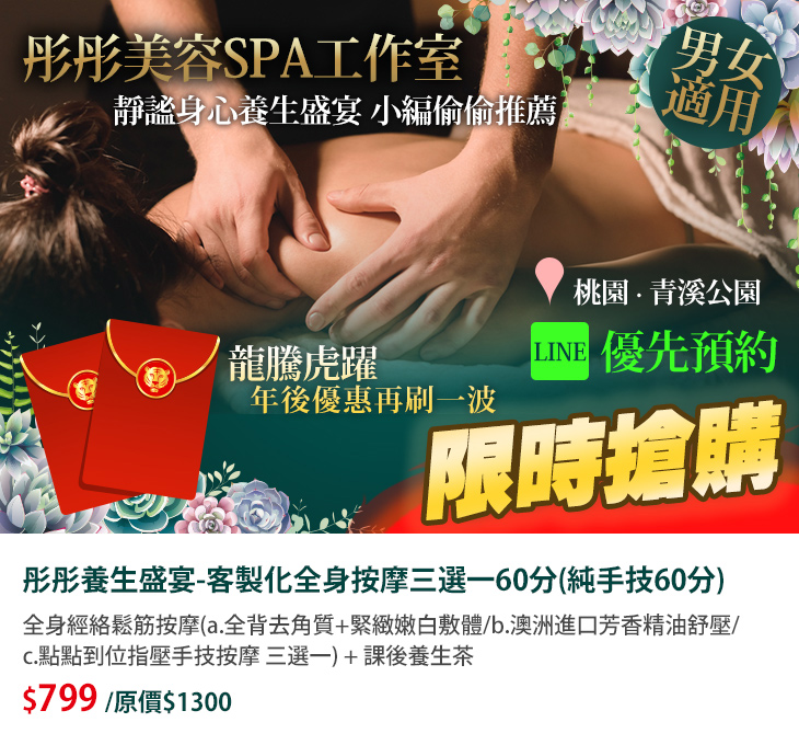 ➽ 彤彤養生盛宴-客製化全身按摩三選一60分(純手技60分)