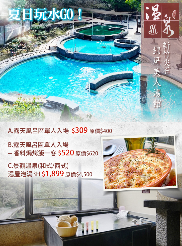 ★ 浸泡於純淨水質的湯泉裡,滋潤每一吋肌膚、釋放身體所累積的疲勞!
