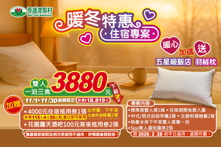 前有紓壓樂活的忘憂谷、後有自然清新綠森林,日夜展不同風情!坐落國際慢城三義的西湖渡假村,緊鄰中山高三義交流道,交通便利,60公頃的偌大園區,山林蓊鬱、花木扶疏、空氣清新,更是樂活紓壓的渡假勝地!不論親子出遊、情侶約會、親友相聚都十分適宜。