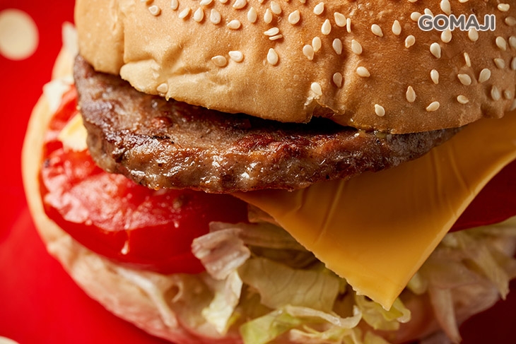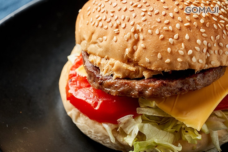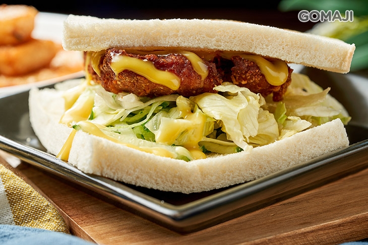 以現烤台式漢堡為基底,加入新鮮生菜與蕃茄切片,最後放上主角 - 特製香煎厚牛堡及黃金起司、花生醬,鼓鼓飽滿的模樣,讓人看了心滿意足啊!大口品嚐,料好味佳!花生帶點顆粒感、濃郁香醇的滋味,與牛肉相襯,毫無違和!再配上生菜、蕃茄綜合一下,爽口不油膩,就是要給您最大大的滿足!
