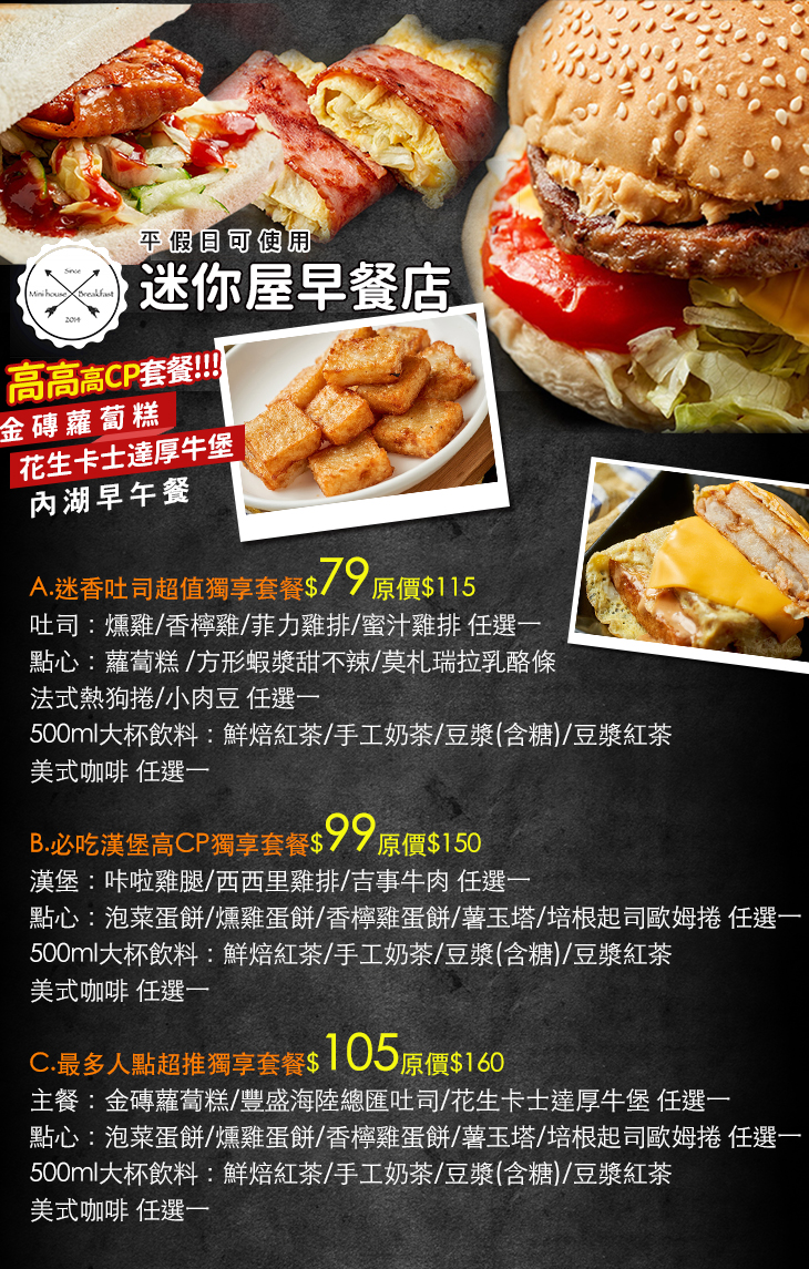 近捷運東湖站、哈啦影城!在內湖這帶小有名氣的【迷你屋早餐店】,與夠麻吉攜手推出專屬優惠啦!