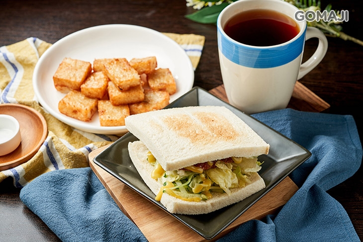 超人氣必點 - 金磚蘿蔔糕,以黃金蛋為基底,裡頭放上一片片真材實料的傳統古早味蘿蔔糕,最後再放上黃金起司,創意組合,讓身為標準吃貨的您我為之著迷。一口咬下,蘿蔔糕綿密、軟彈、不油膩的口感,上頭有著蛋與起司交緻而出的迷人氣息,微微牽絲滋味配上濃郁蛋香,不用多說,仔細品嚐感受美味的環繞吧!.jpg)