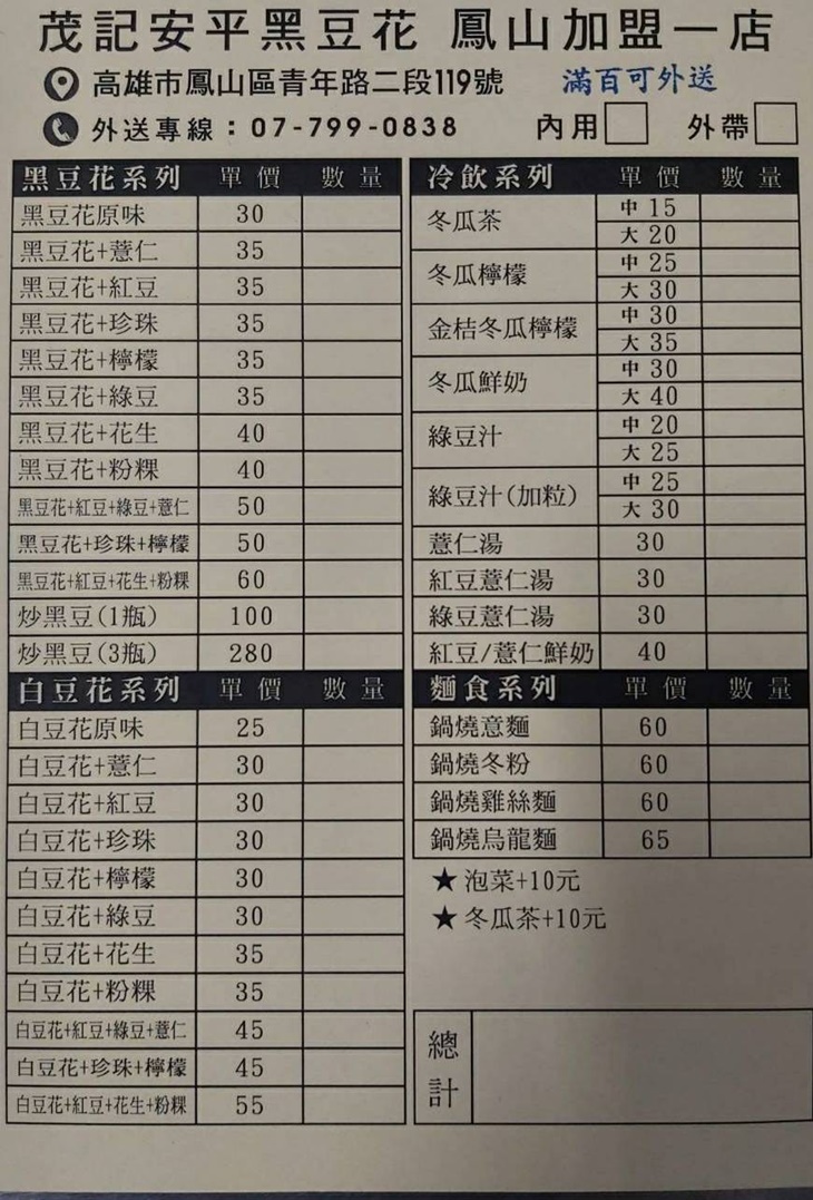 ㊣ 茂記安平黑豆花(鳳山加盟一店)
