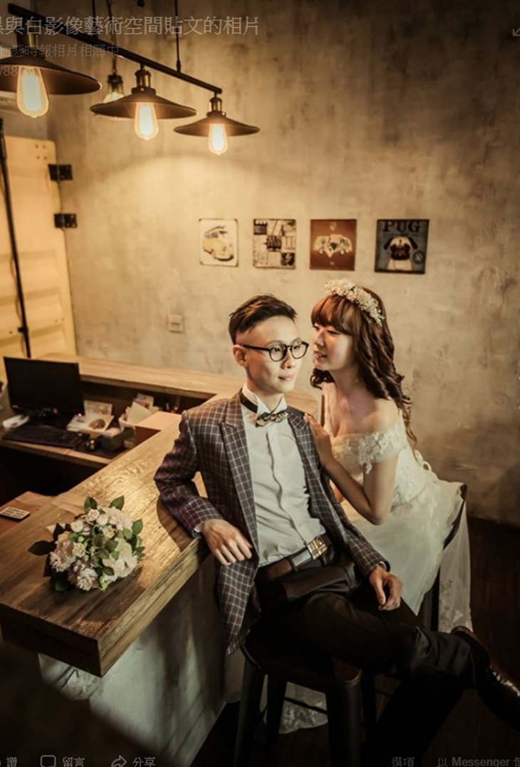 棚內任選白紗1套(含拍照款西服1套,白色西服/黑色西服 2選1) + 自備便服1套 + 新郎和新娘整體梳化造型 + 電子精修檔10組〉加贈18吋無框照片畫1個(含自選照片1張)