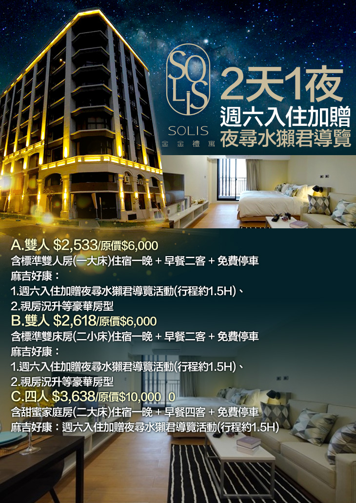 ※ 麻吉好康:週六入住加贈夜尋水獺君導覽活動(行程約1.5H)
