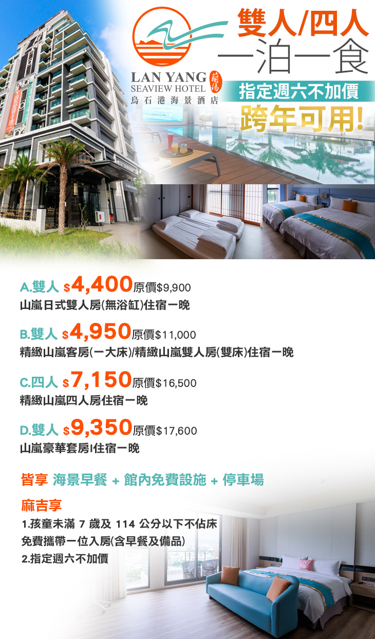 【宜蘭-蘭陽烏石港海景酒店】感謝麻吉們熱烈搶購,已全數賣光光。