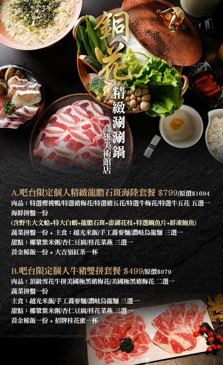 【銅花精緻涮涮鍋(高雄美術館店)】感謝麻吉們熱烈搶購,已全數賣光光。