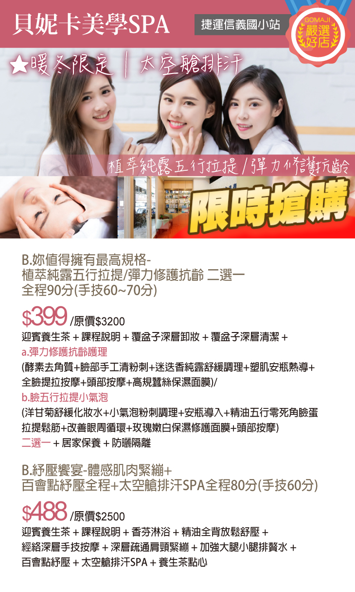 【貝妮卡美學SPA】感謝麻吉們熱烈搶購,已全數賣光光。
