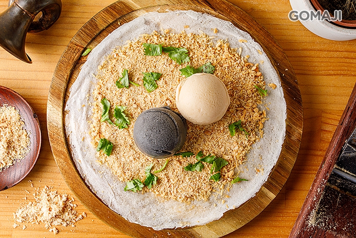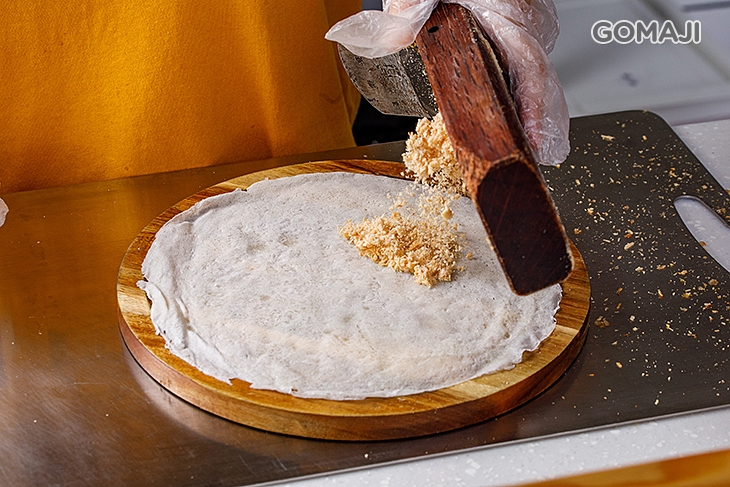 揀選老店的花生磚現刨出綿密的花生粉,滿滿鋪盛在同樣是老店出產的餅皮上,堅持使用擁有長年功夫的食材,才能打造出最有古早味的全新美味!