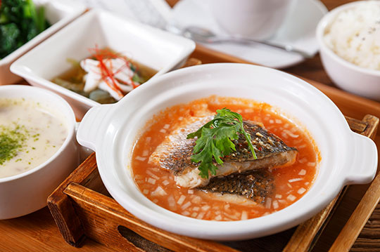 酸酸辣辣的滋味,搭配上新鮮當季的滑嫩鱸魚,絕妙口感超下飯,彷彿新鮮的鱸魚在嘴裡活躍的跳動著。
