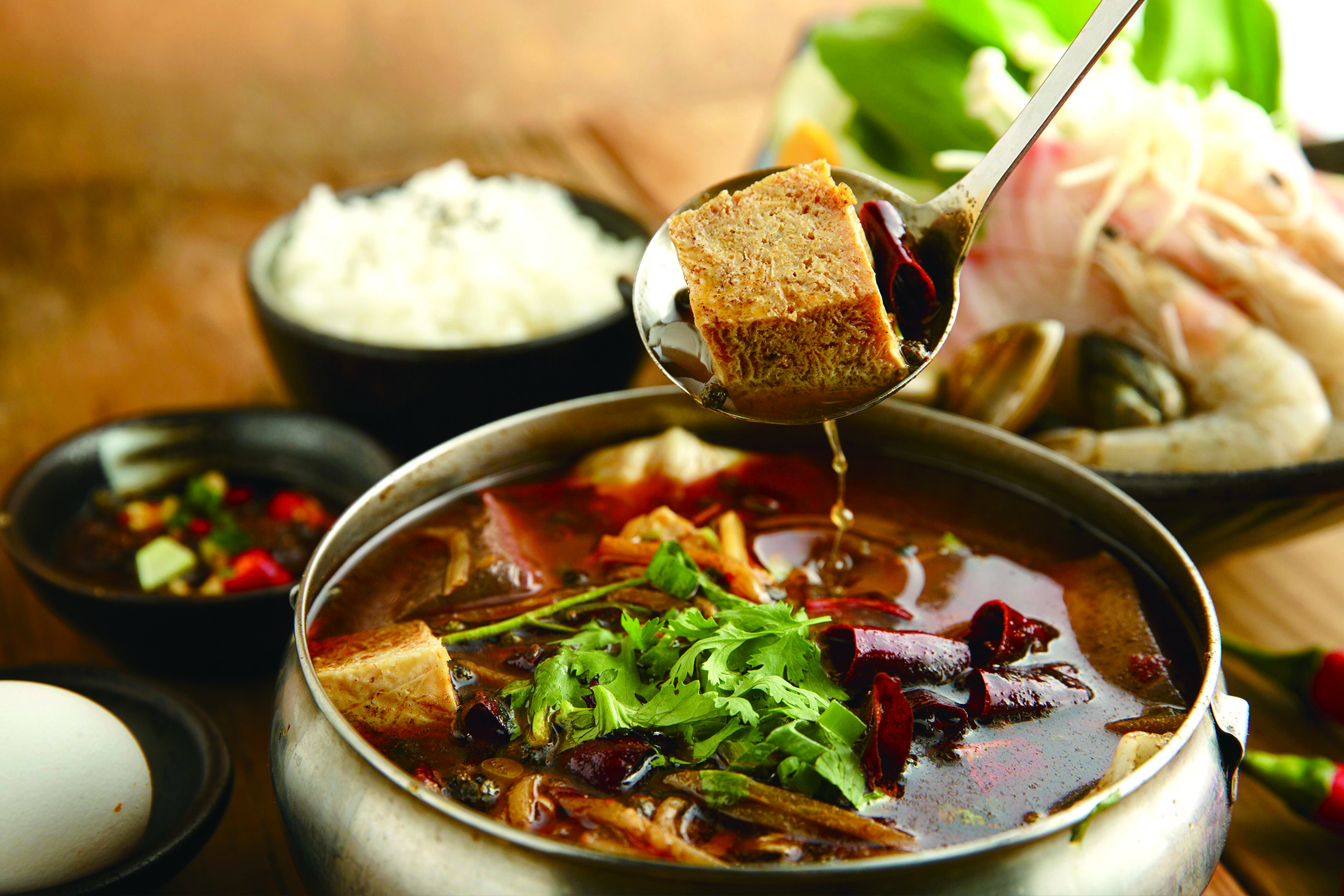 道地四川傳統漢族特色風味!麻、辣、鮮、香、酸一次滿足,辛香味充斥撲鼻,可選擇搭配肉類或海鮮,附上清爽的綜合蔬食鍋料拼盤,嗜辣者必點!