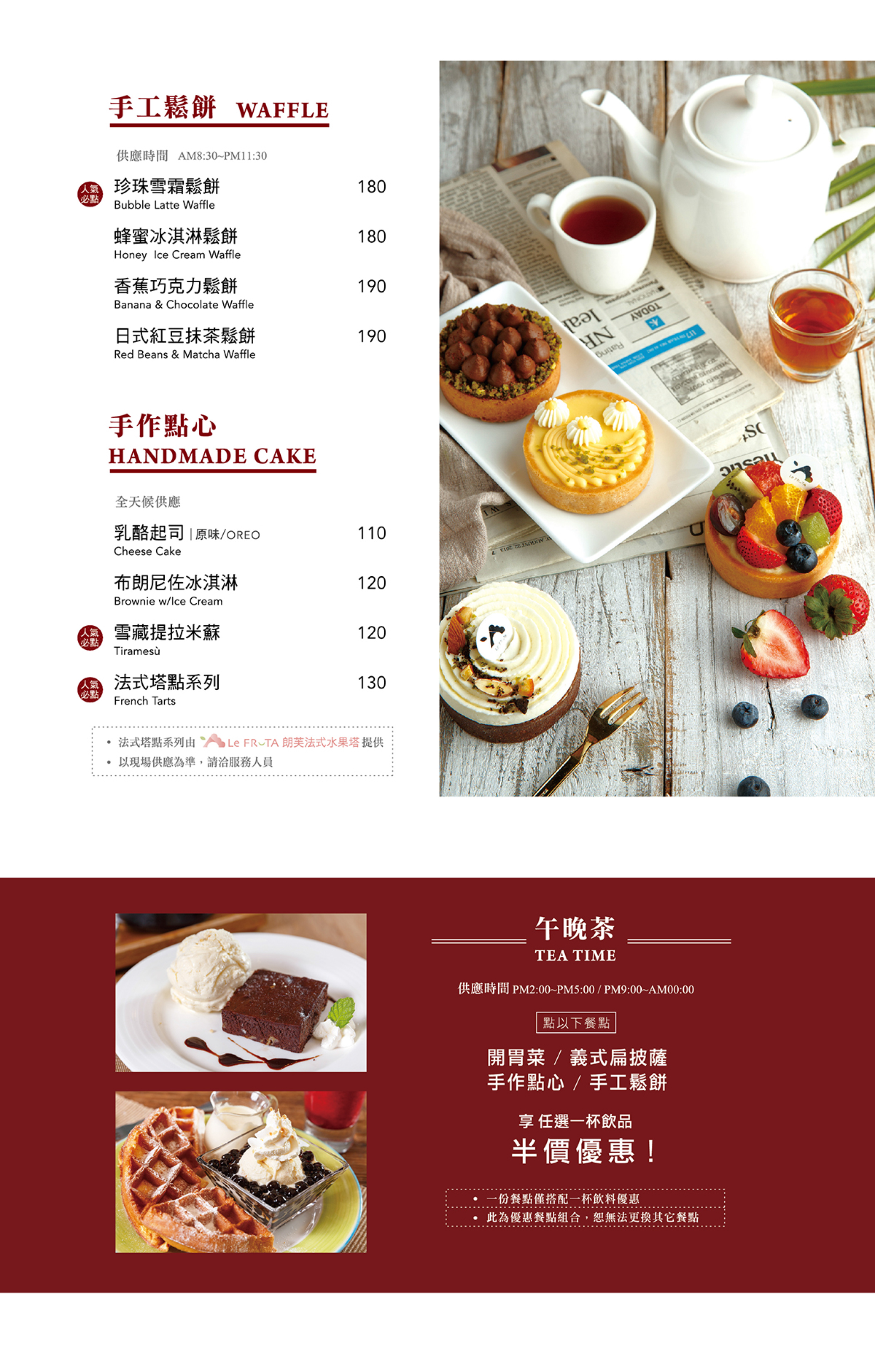 嚴選天然食材及高級進口原料,每日手工製作新鮮配送到店,全天候供應。