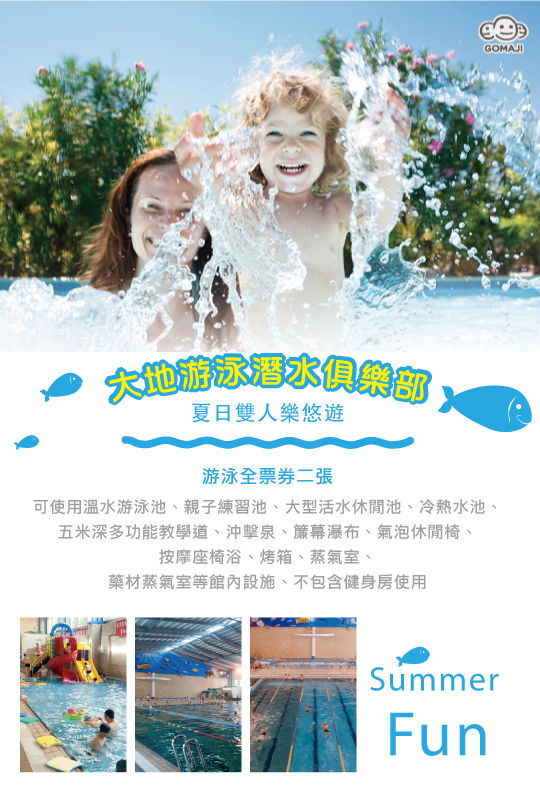 【大地游泳潛水俱樂部】自今已營業多年,深受廣大高雄麻吉的喜愛!採用兩層樓挑高設計的寬廣空間,利用兩旁玻璃自然採光,整體環境明亮舒適,不用擔心人擠人的問題。水上設施包含游泳池、按摩池、兒童戲水區、三溫暖等,豐富多樣的設備讓人盡情享樂其中!