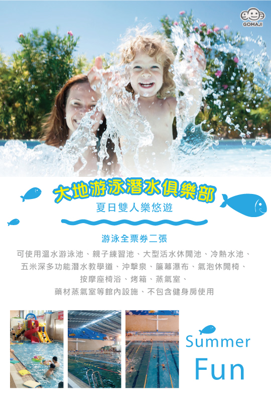 【大地游泳潛水俱樂部】自今已營業多年,深受廣大高雄麻吉的喜愛!採用兩層樓挑高設計的寬廣空間,利用兩旁玻璃自然採光,整體環境明亮舒適,不用擔心人擠人的問題。水上設施包含游泳池、按摩池、兒童戲水區、三溫暖等,豐富多樣的設備讓人盡情享樂其中!