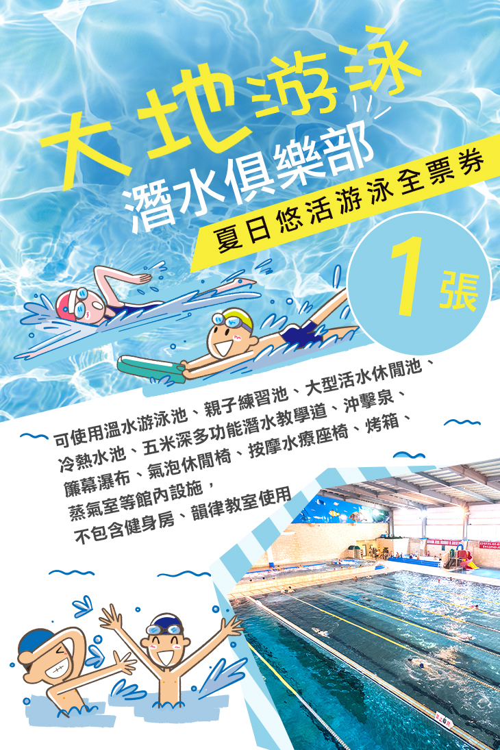 另一邊還有大地遊泳潛水俱樂部中超受歡迎的多功能活水設施,平日工作生活壓力累積的痠痛疲勞,現在終於有獲得解放的時候!趕快下水享受強力水柱的沖擊,所有疲憊通通一沖而散,舒服的讓你直呼太爽快啦!