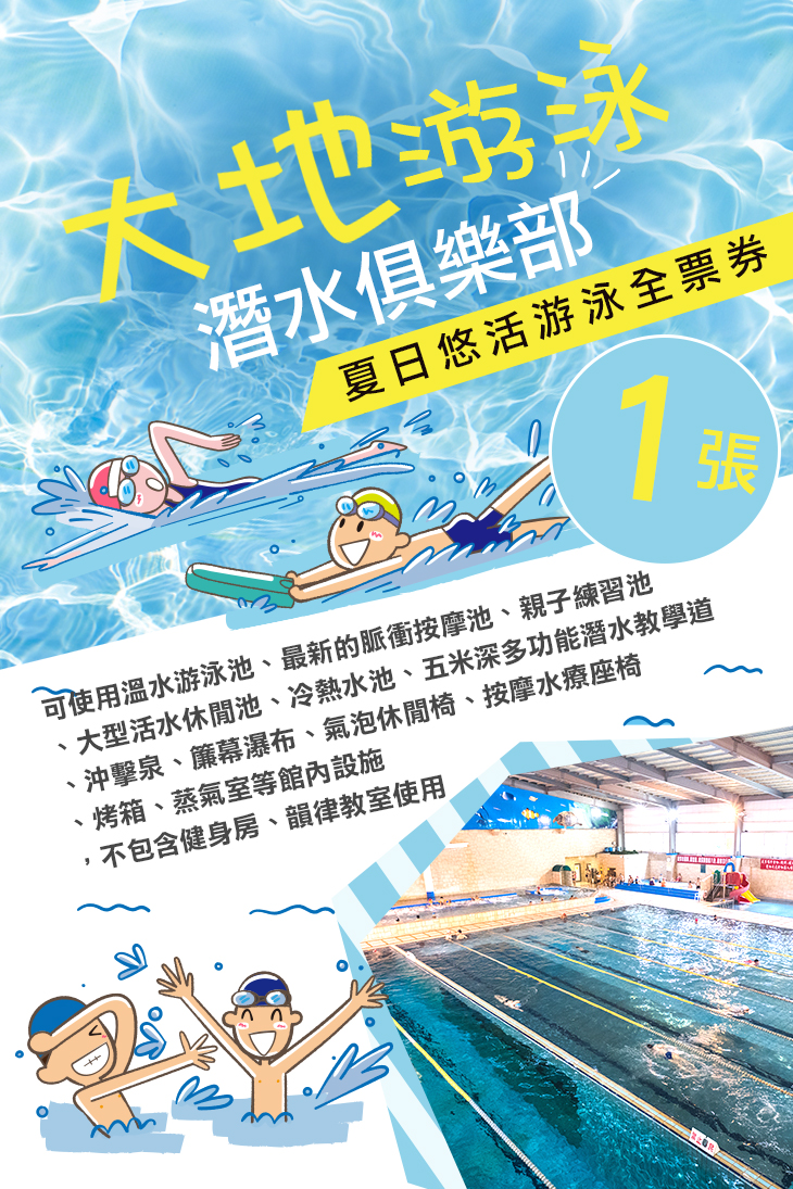 另一邊還有大地遊泳潛水俱樂部中超受歡迎的多功能活水設施,平日工作生活壓力累積的痠痛疲勞,現在終於有獲得解放的時候!趕快下水享受強力水柱的沖擊,所有疲憊通通一沖而散,舒服的讓你直呼太爽快啦!