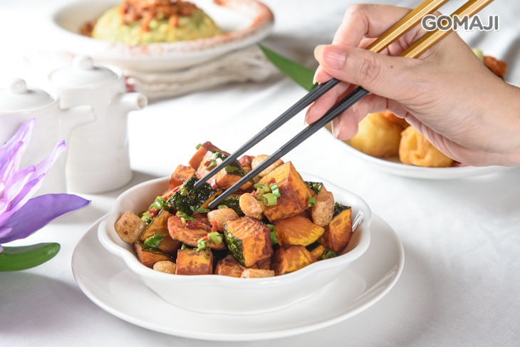 特別使用甜度極高的栗子南瓜,透過乾煸手法料理,將南瓜天然的甜味完整逼出,爽口又酥香的口感,一咬下便在味蕾之上化開,外層帶有焦香,裡頭卻綿密無比,而栗子南瓜甜而不膩的風味,溫潤又醇厚,輕柔地撫過舌尖,為身心帶來一絲慰藉,可說是:吃了,便能感到滿滿幸福、愉悅的一品!