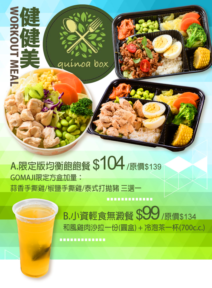 健健美-quinoabox 專賣低脂低卡健康餐盒,無論在原物料的挑選,或是在口味的調配上,皆注入了100%的創意與心血,推出了多款少油、少鹽的低卡餐盒,對於想瘦身的朋友們、忙碌的上班族都是最好的選擇唷 ~