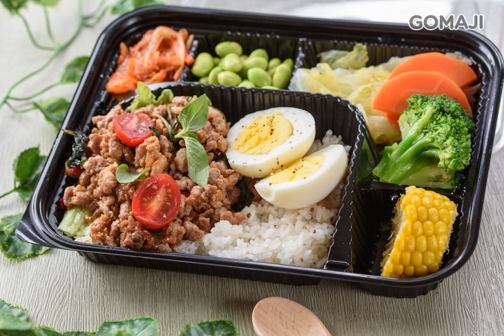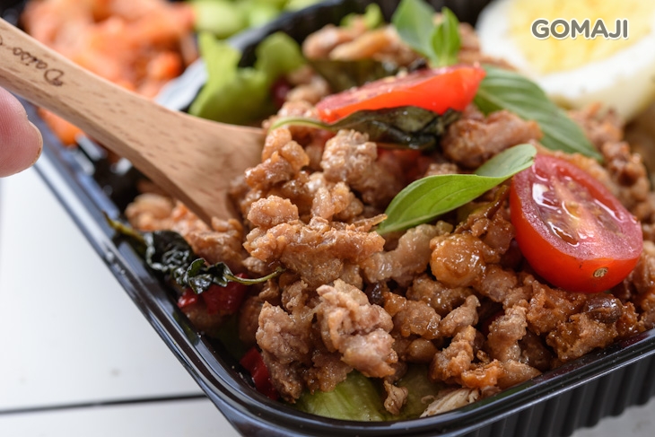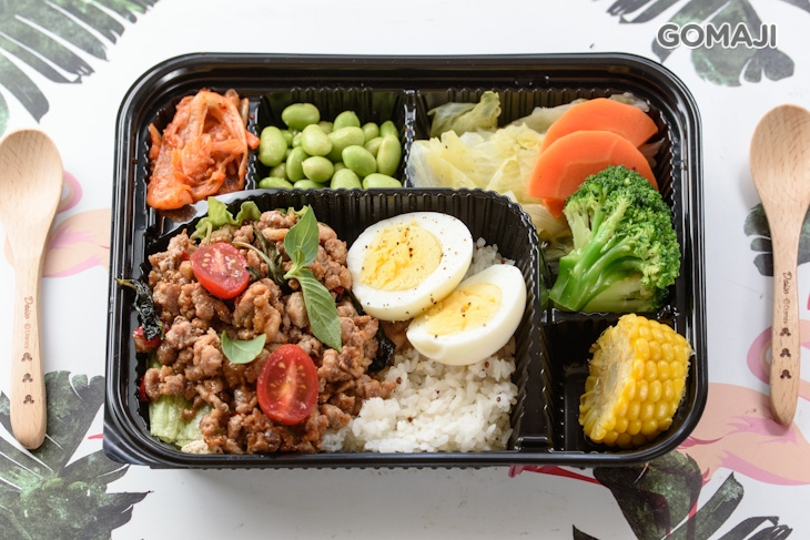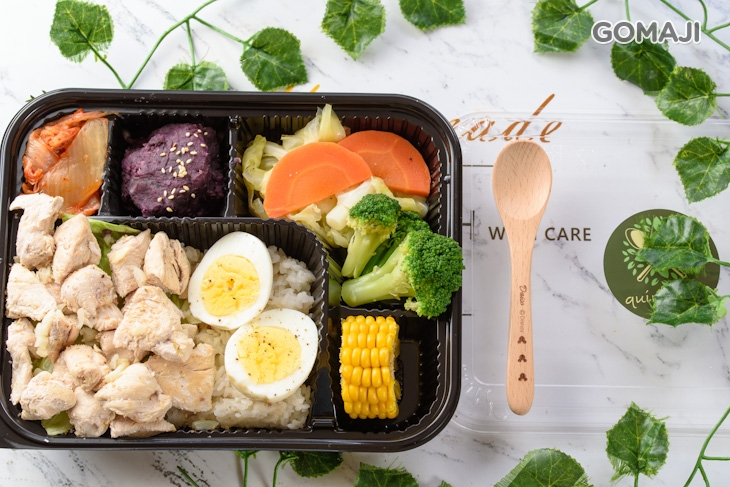 將泰式料理的經典菜色 - 打拋豬完美融入於餐盒中,與道地的口味相比,店家特別將調味調得淡一些,不僅吃起來更為清爽,也不失打拋豬原有的酸辣氣息,搭配穀類中的紅寶石”紅藜麥”加入白飯中,輕鬆補充人體所需的8種胺基酸,紅藜麥有豐富的膳食纖維,是地瓜的7倍,5種季節時蔬和水煮蛋,吃得健康又美味!