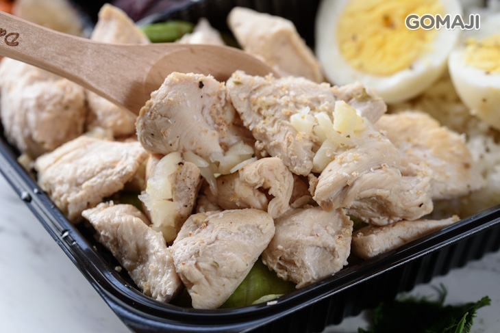 以低溫烹調而成的新鮮雞肉,軟中帶香、多汁鮮甜,搭配多種脆甜生菜一同入口,吃起來更為清爽,整碗沙拉不含澱粉、營養豐富,是追求健康的你最好的選擇唷!