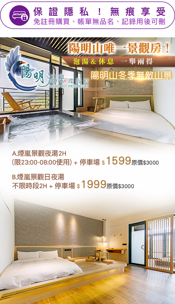 ★ 陽明山唯一景觀房,給您前所未有的愜意享受~泡湯與休息,一舉兩得!