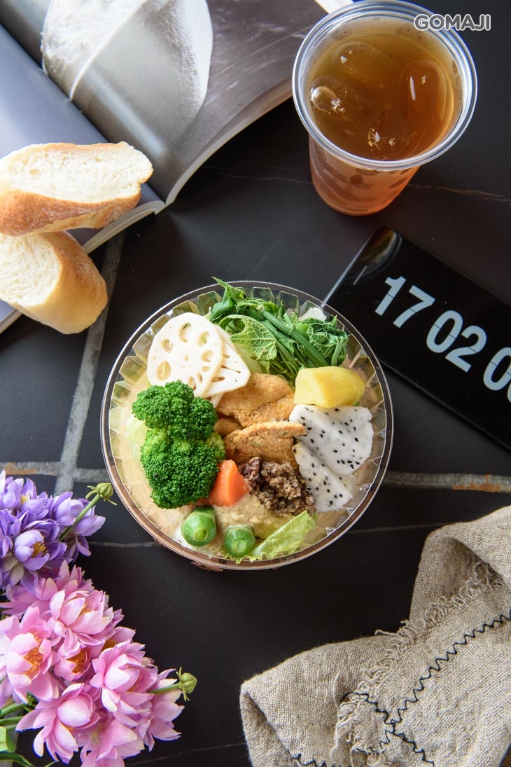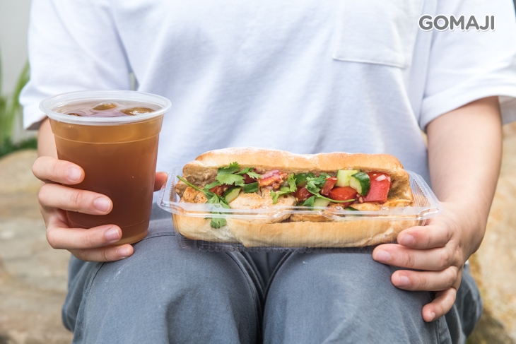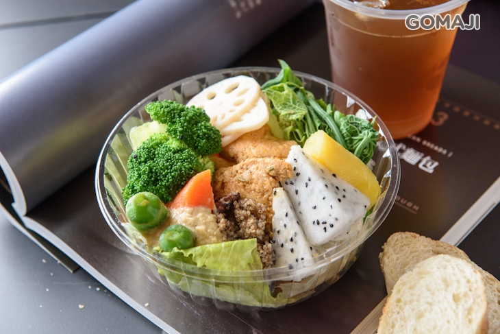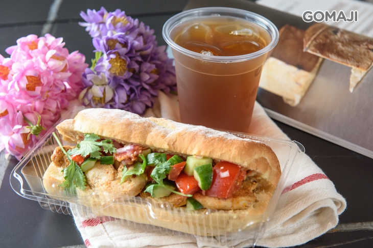 豐盛迷人的內餡是以自醃煙燻紅椒雞胸肉佐蕃茄蔬果莎莎醬、特調鷹嘴豆泥等精選食材組合製成,搭配自製現烤米穀軟法,如潛艇堡的口感,每一口都嚐盡雞肉與蔬菜交緻而出的曼妙口感,清新爽口,非常適合悶熱的天來上一份,美味、營養滿分。