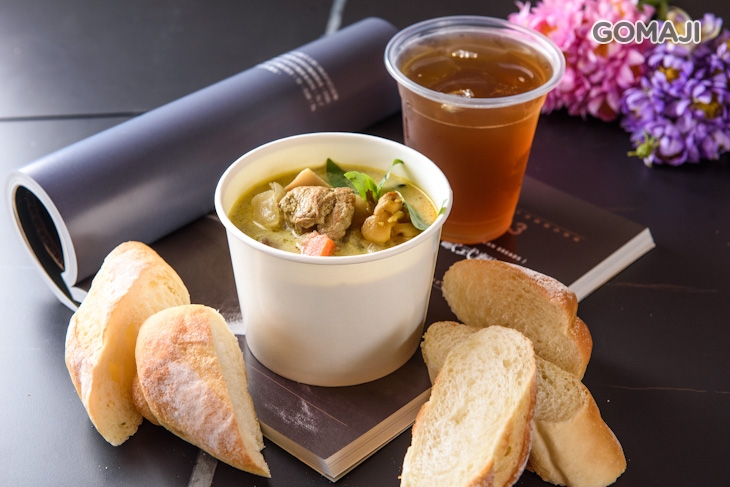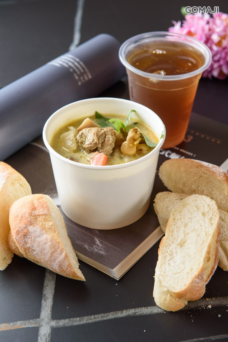 上選雞腿肉,以泰式綠咖哩醬汁入鍋,搭配洋蔥、馬鈴薯、蔬菜及椰奶、帕瑪森起司提味烹煮而成。肉質彈牙、肥美的雞腿肉,被擁有濃郁香氣與口感的綠咖哩燉煮得相當入味,配上蔬菜的清甜,滋味更順口、更迷人喔 ~ 單吃或佐現烤米穀軟法,外酥內軟、濕潤鹹香的多層次口感,人人吃過都爭相推薦喔。