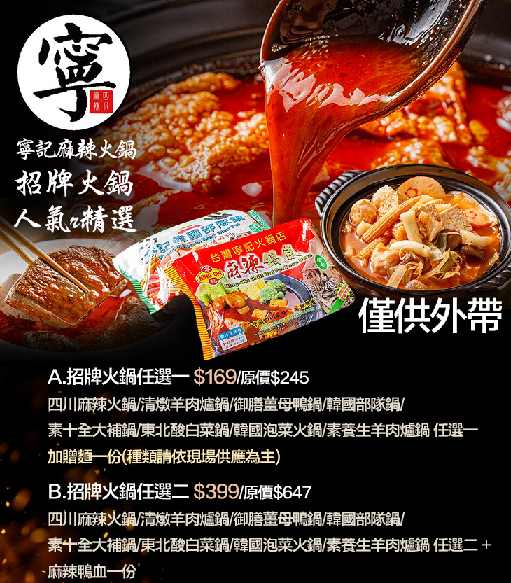 ※本優惠僅供外帶,本方案鍋物為冷凍包裝