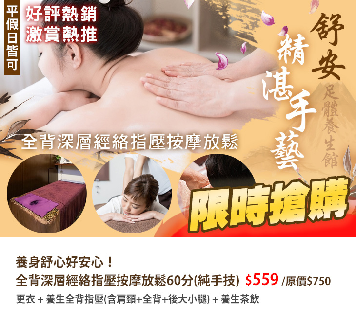 ❖ 養身舒心好安心!全背深層經絡指壓按摩放鬆60分(純手技)