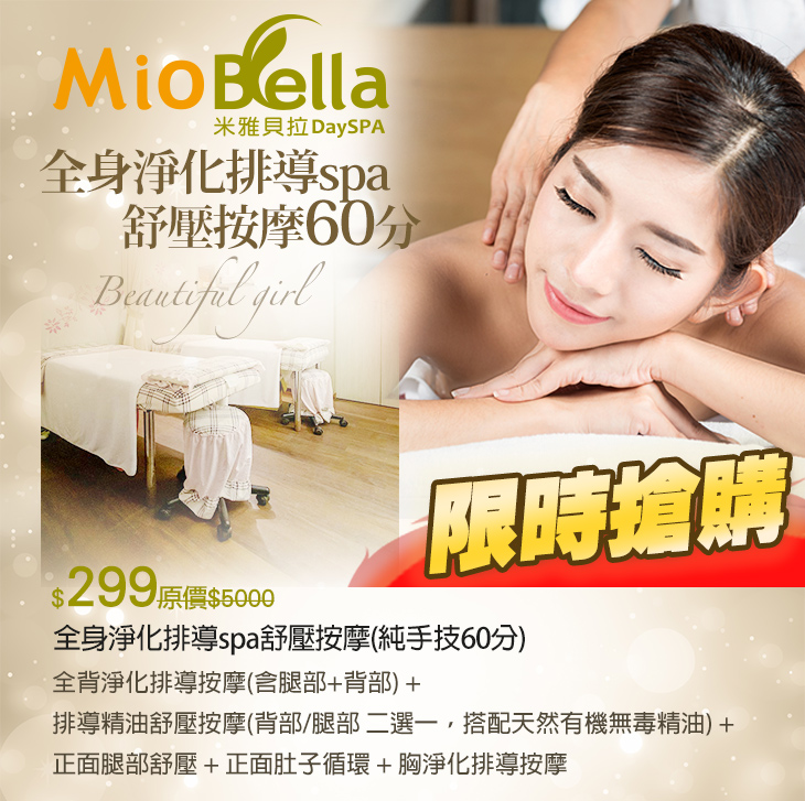 ❈ 全身淨化排導spa舒壓按摩(純手技60分)