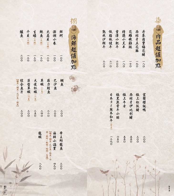 ※菜色內容依季節時令調整,實際菜色、價目依現場提供為主
