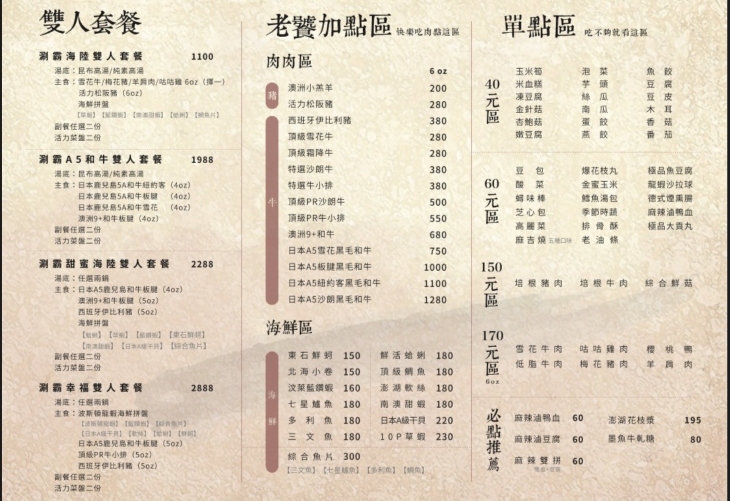 價位雖然親民,但店家對於食材、用料絕對是不小氣、不手軟,除了肉品使用原肉塊現點現切,也精選時令新鮮的豪華海鮮,更堅持挑選品質最好的「元氣蛋」,從小細節開始便很注重,讓平價鍋物,也可以擁有奢華的享受。