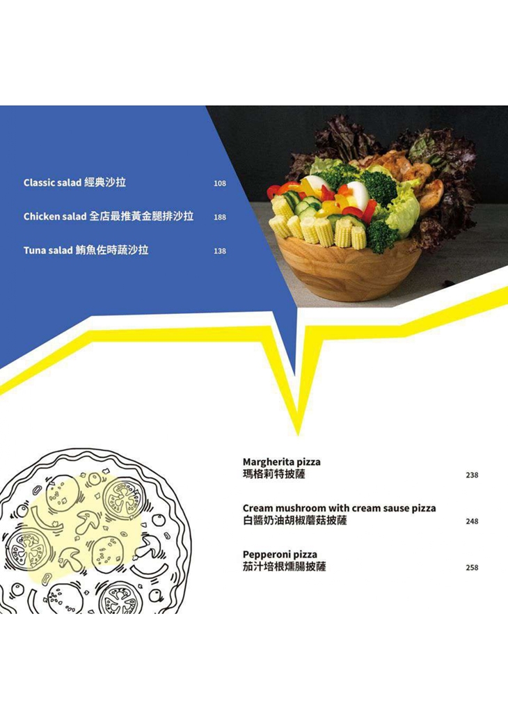 雙拼口味的披薩,讓您一次盡收兩種不同的義式美味!烘烤得酥香脆口的餅皮,帶有些許Q度,搭配風味帶酸、促進食欲的瑪格莉特風味,以及濃香醇厚、略有辛香的白醬奶油胡椒蘑菇口味,嗯~無論哪一種,都是這麼的好吃,真是太幸福啦!