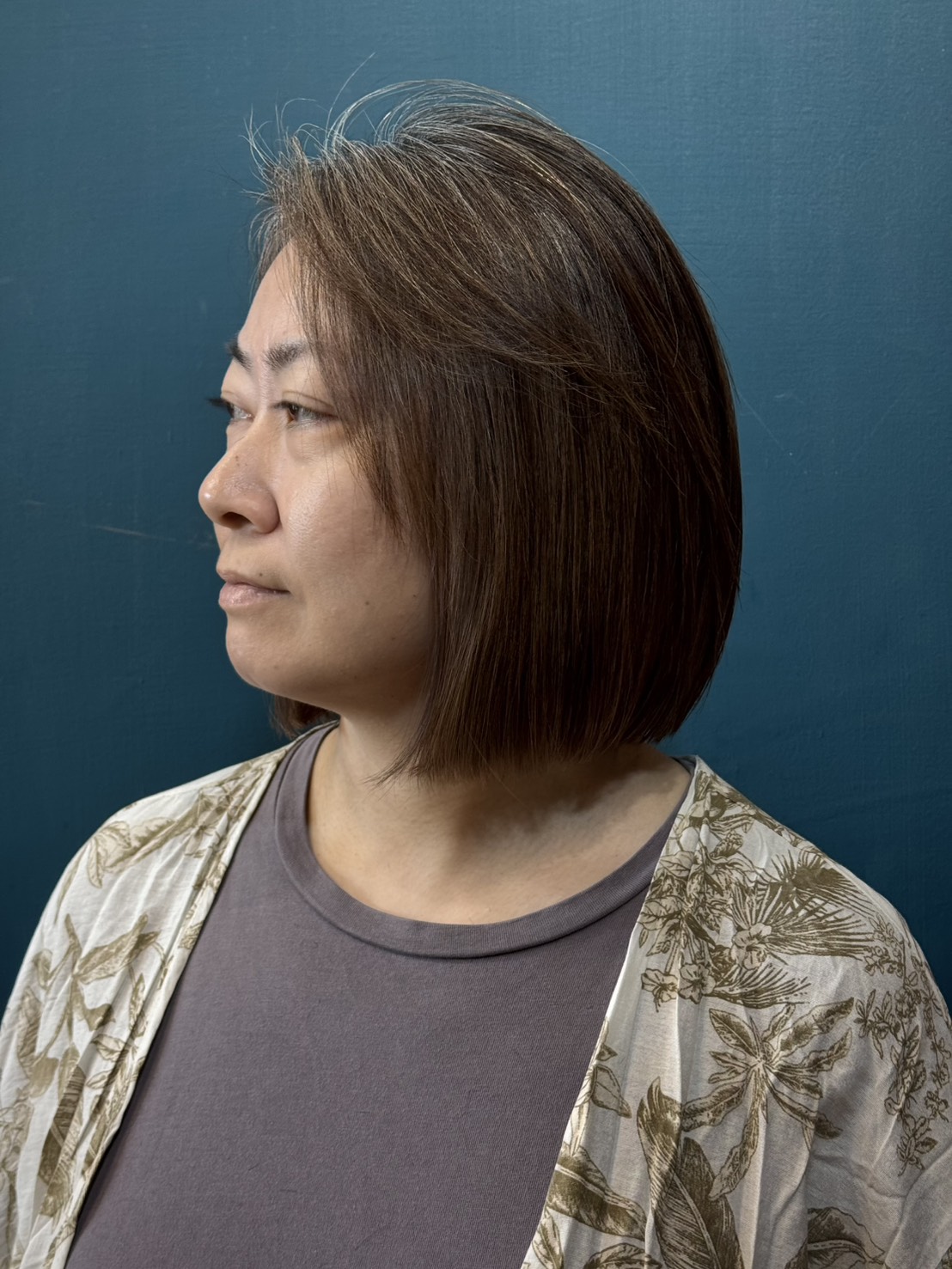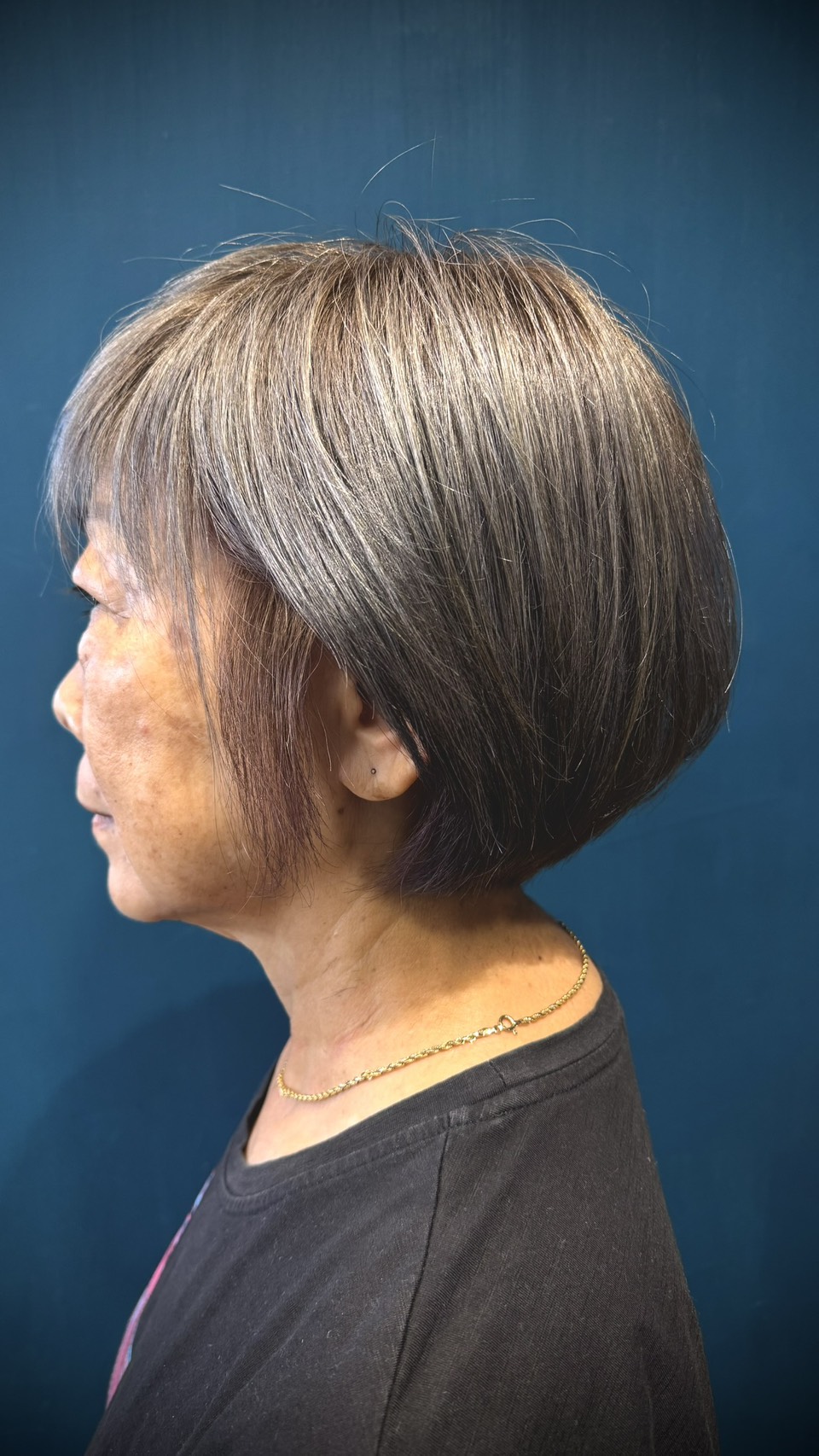 〈造型建議溝通 + 舒敏頭皮隔離精華 + 質感全染 + 髮絲柔順護髮 + 染後淨化洗髮 + 時尚造型吹整〉