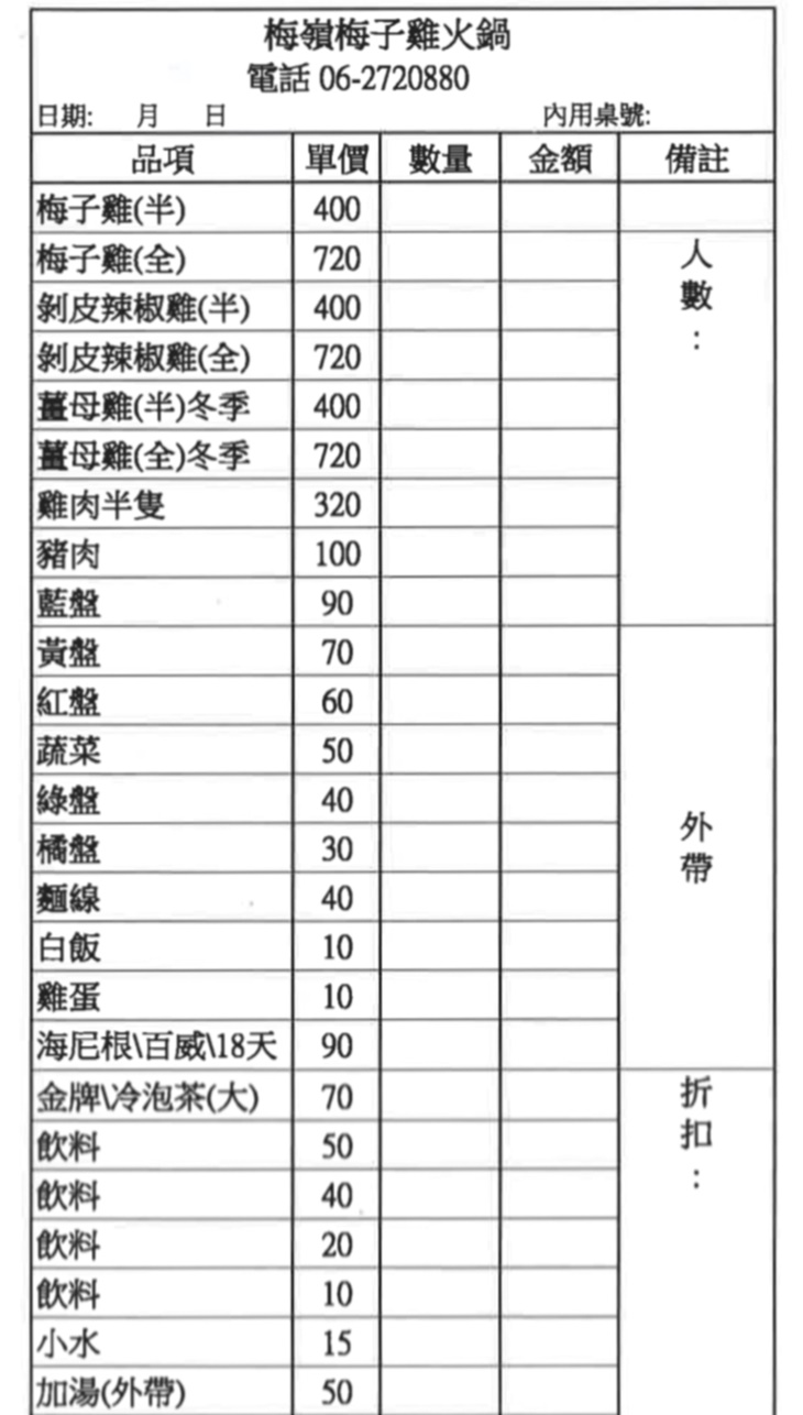 梅嶺梅子雞火鍋專賣店 MENU