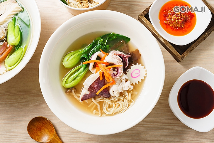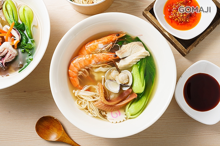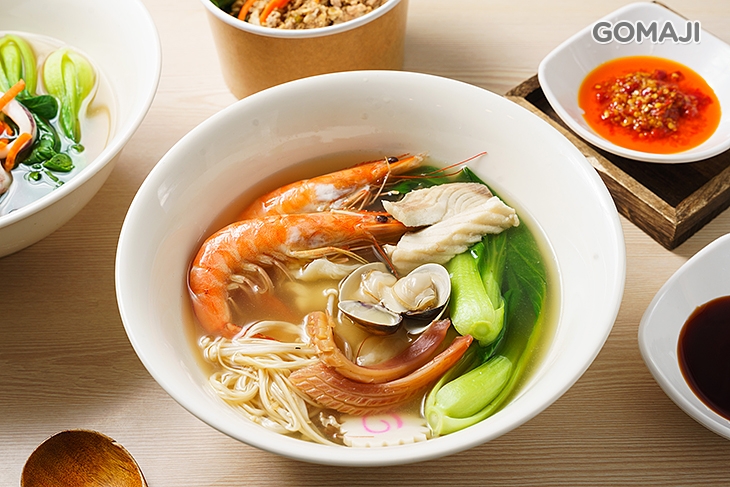 闆娘以獨特比例熬煮湯頭,口感溫潤又清甜,搭配鮮蝦、蛤蠣、蔬菜、金針菇等食材入湯,讓湯水多了一抹迷人鮮香,簡單樸實的美味,暖心又暖胃。