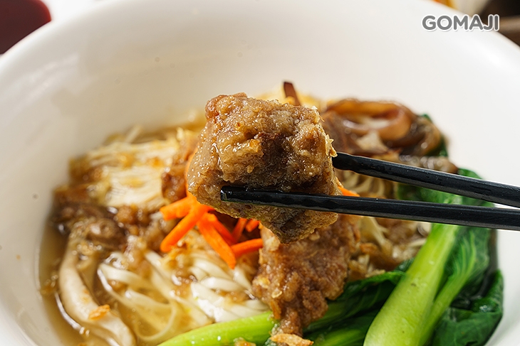 熱呼呼的特製湯頭,滋味清甜、香氣四溢,將豬肉彈嫩、充滿嚼勁的口感完美襯托,每一口咀嚼,鮮甜的肉香便綻放在齒唇之間,樸實的美味讓人感到滿足!