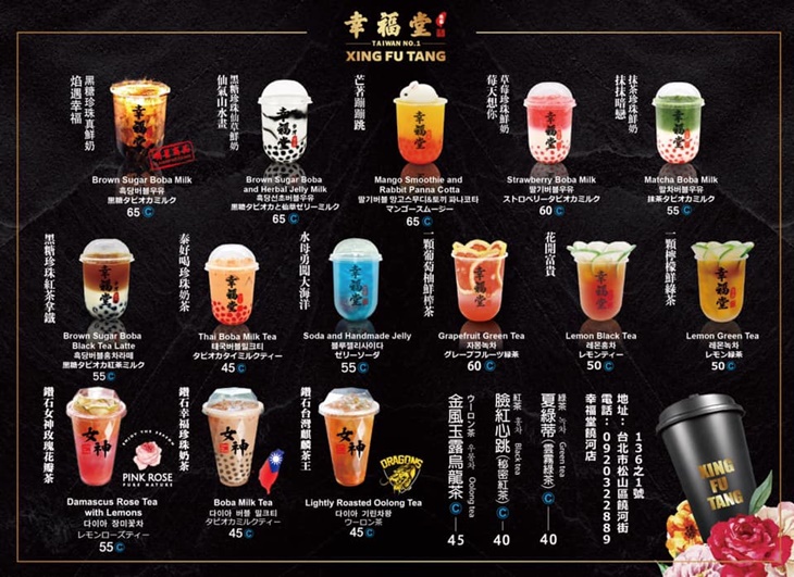 以黑糖珍珠鮮奶起家的【幸福堂】,創立至今,在全球已擁有多家分店。在競爭極為激烈的飲料市場上,不僅僅只有保留原創美味,因應時代變遷與消費者的喜好改變,積極跟隨潮流前端,不斷研發、推出極具話題性的新品,而每一次的突破與創新,都成功造成轟動!並持續以至高無上的服務,將幸福傳遞至世界各個角落。