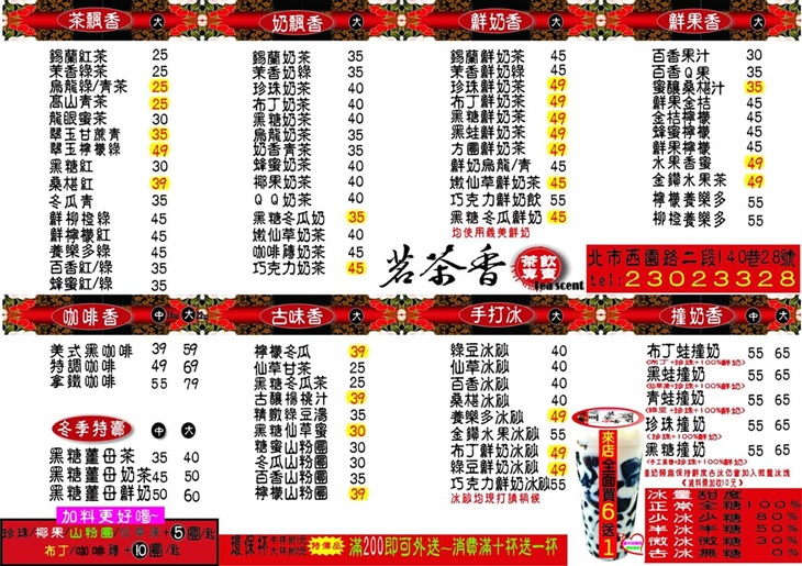 【茗茶香】專賣好喝、料多、平價的高CP值茶飲,堅持選用優質新鮮的食材,細心研發出一杯又一杯令人讚嘆的手搖飲,甜而不澀的茶底,搭配Q彈珍珠、柔滑椰果等都是絕配,口口讓人陶醉其中、意猶未盡,值得您細細品味!