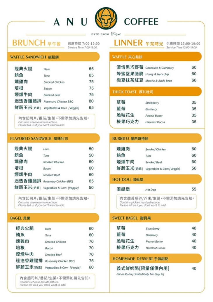▣ 餐點提供以手作輕食,還有特調咖啡、飲品為主。品項豐富、選擇多元!無論您今天是想來點重口味 - 煙燻牛肉墨西哥捲餅,還是香甜可口的蜂蜜堅果脆脆,悠閒的午後,與三五好友各自來店點上一份,再搭配杯冰咖啡,一天的小確幸由您來創造!用心經營、專業製作,只為顛覆您對一般咖啡廳的想像喔!
