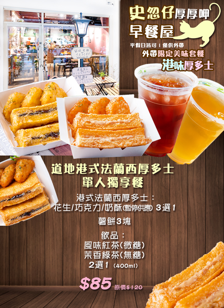 ➤道地港式法蘭西厚多士單人獨享餐