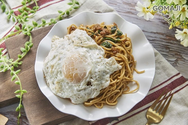 色香味俱全的打拋辣豬炒麵,也是老饕指名必嚐的一道人氣料理。麵Q醬香,打拋豬肉那股鹹香,徹底被九層塔給勾勒出來,入口感受肉汁與醬汁美味的環抱,帶點微微辛辣,配上香煎蛋,最終美味更是令人難以想像。
