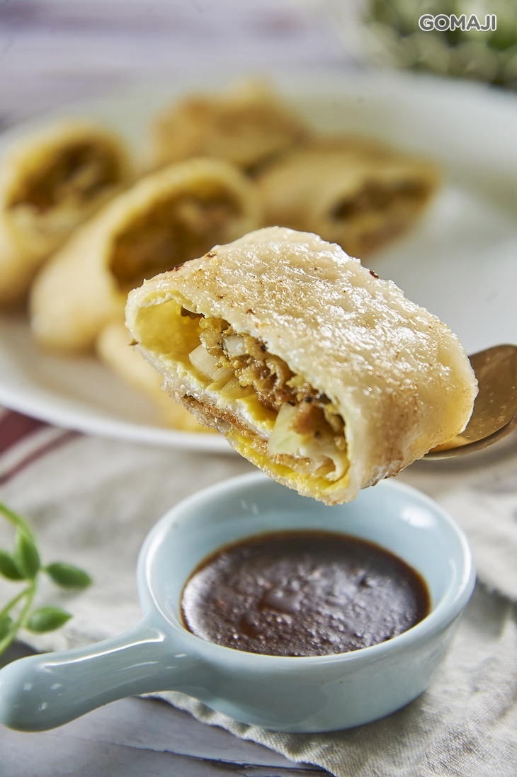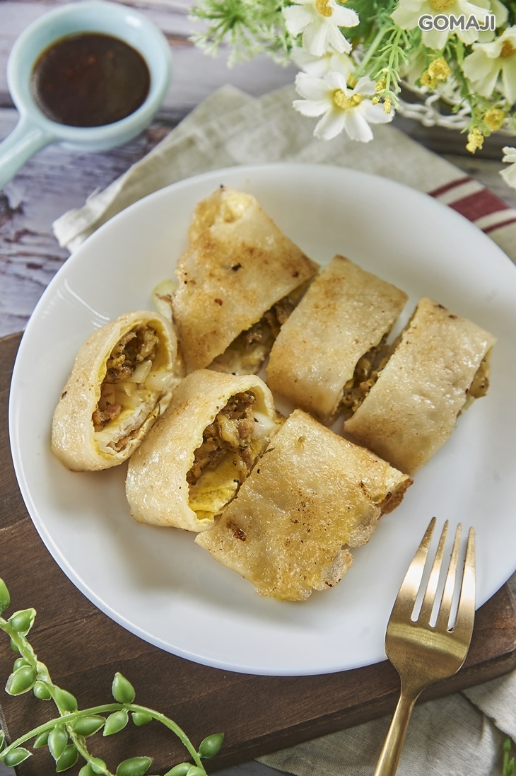 以香草預先醃製的鮮嫩豬為蛋餅裡頭的內餡主角,軟Q焦香的蛋餅皮,每一口都釋放濃濃的古早味香氣,香氣中時不時還能咀嚼出淡淡香草清香,讓人一口接著一口直呼美味呀 ~
