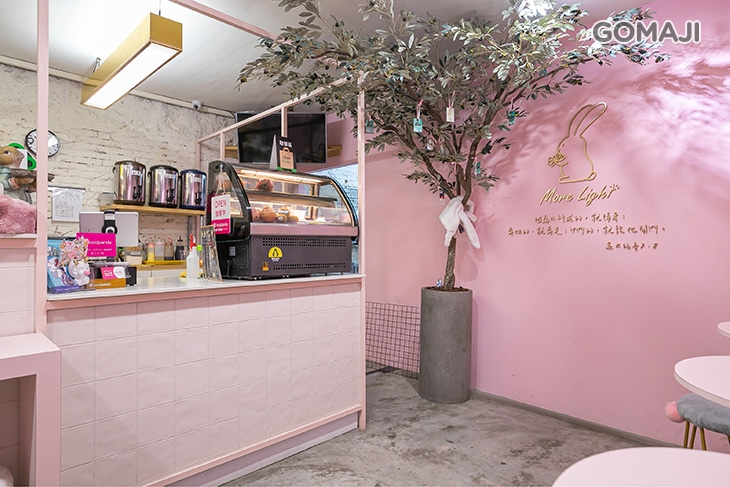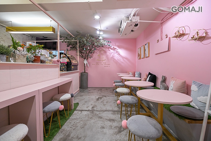 以為只有這樣而已嗎?那你就大錯特錯啦!重頭戲才正要上場呢!粉白色刷漆結合質感沙發桌椅、乾燥花樹、兔兔圖案抱枕與飾品......,處處可見店家的創意與巧思。無論在裝潢的色調上,還是飾品的點綴、佈置上,都成功抓住顧客目光,讓人看了心情莫名放鬆又愉悅啊!