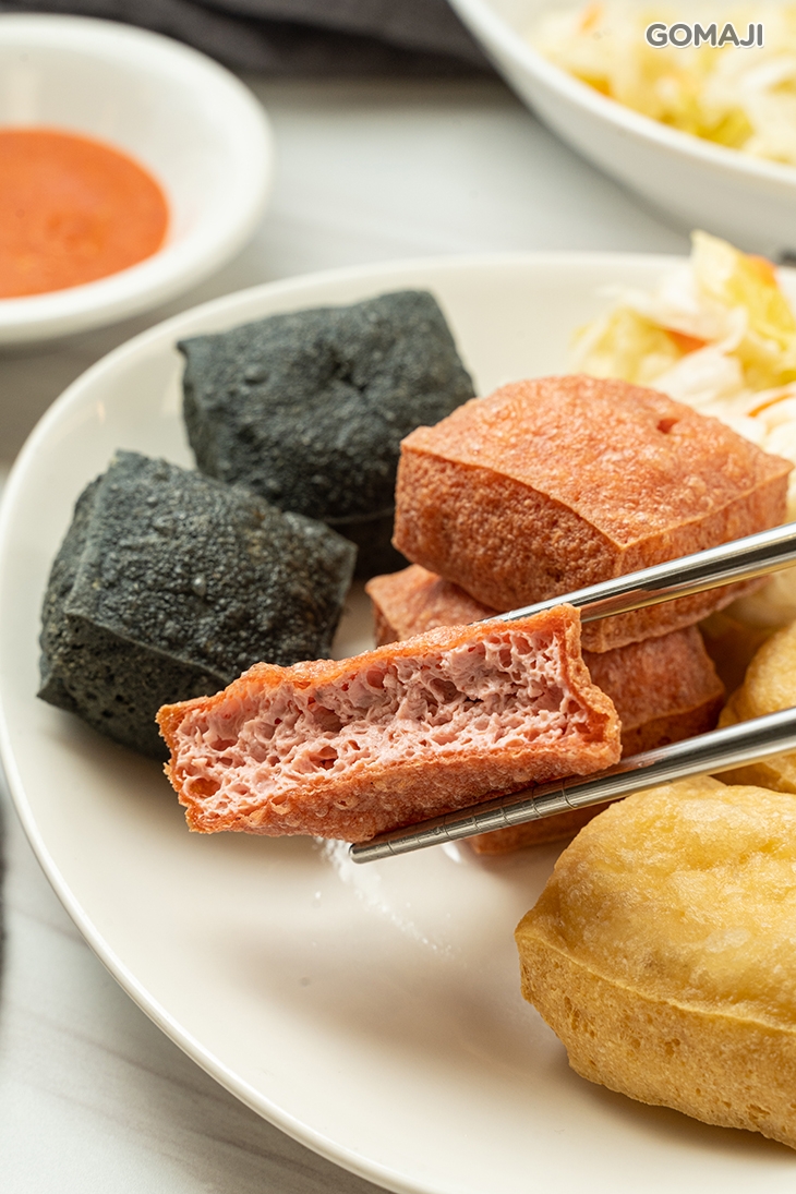 選用健康紅麴與竹炭入料,透過特別手工製成的紅色與黑色臭豆腐,與金黃的原味臭豆腐有著不變的臭香美味,但外表多了與眾不同,為您點綴繽紛多彩、前所未有的臭豆腐饗宴!