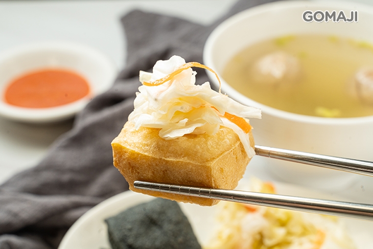 金黃色的原味臭豆腐,佐以酸甜爽口的台式泡菜入口品味,泡菜脆口多汁又爽朗的風味與臭豆腐豐盈又特別的臭香一拍即合,經典組合,無論何時品味都是如此令人銷魂!