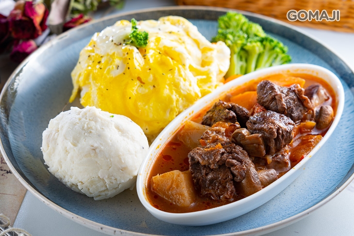 嚴選新鮮上好的牛肋條,佐入特製的紅酒醬汁中悉心精燉,將紅酒醬的精華底蘊,完美地燉入牛肋條中,上桌後取一塊牛肋趁熱品嚐,牛肋被燉得軟嫩不爛,入口便化開,天然濃郁的肉香,與紅酒醬香醇的風味一拍即合,細細咀嚼,紅酒高貴的酒香帶來豐盈的餘韻,讓人齒頰留香~